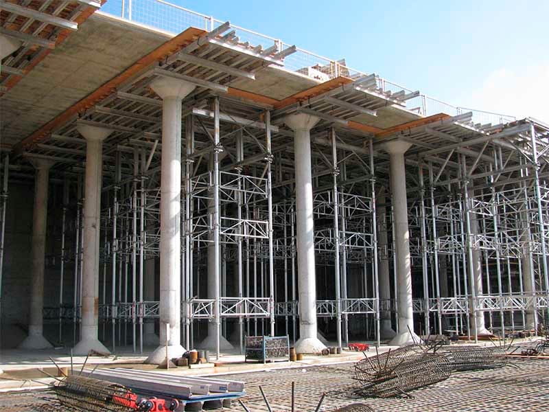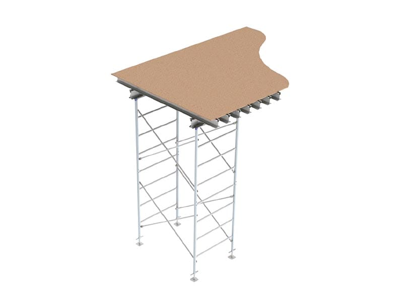 El Sistema de Andamios de Carga es Versátil y Robusto, de fácil instalación y manejo, este sistema consiste en marcos tubulares de hierro, unidos por crucetas. En la parte inferior y superior utilizan niveladores los cuales permiten alcanzar la altura específica de sus losas. Sobre estos, se utilizan vigas de aluminio.