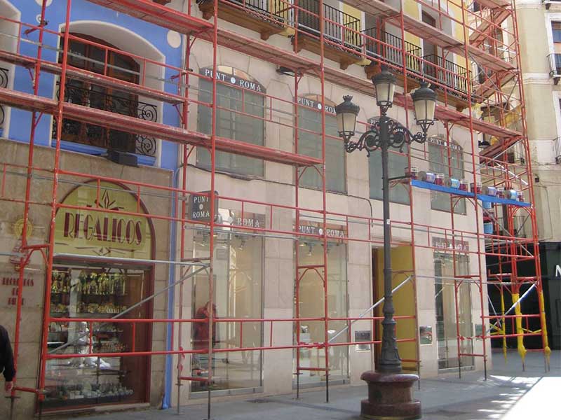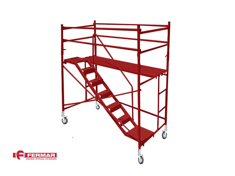 Se arman con crucetas. Posibilidad de colocar rodapiés, barandillas de seguridad y plataformas de aluminio con trampilla para facilitar el acceso por el interior del andamio.