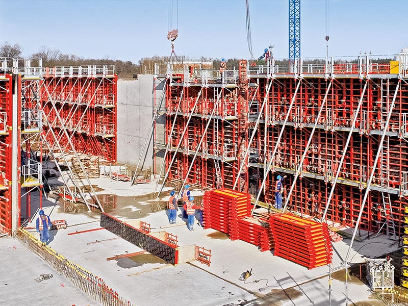 PERI LIWA, el encofrado modular ligero, fue desarrollado especialmente para obras en las que La capacidad de grúa es limitada o debe encofrarse solo manualmente.